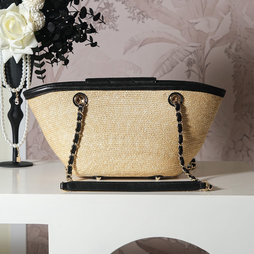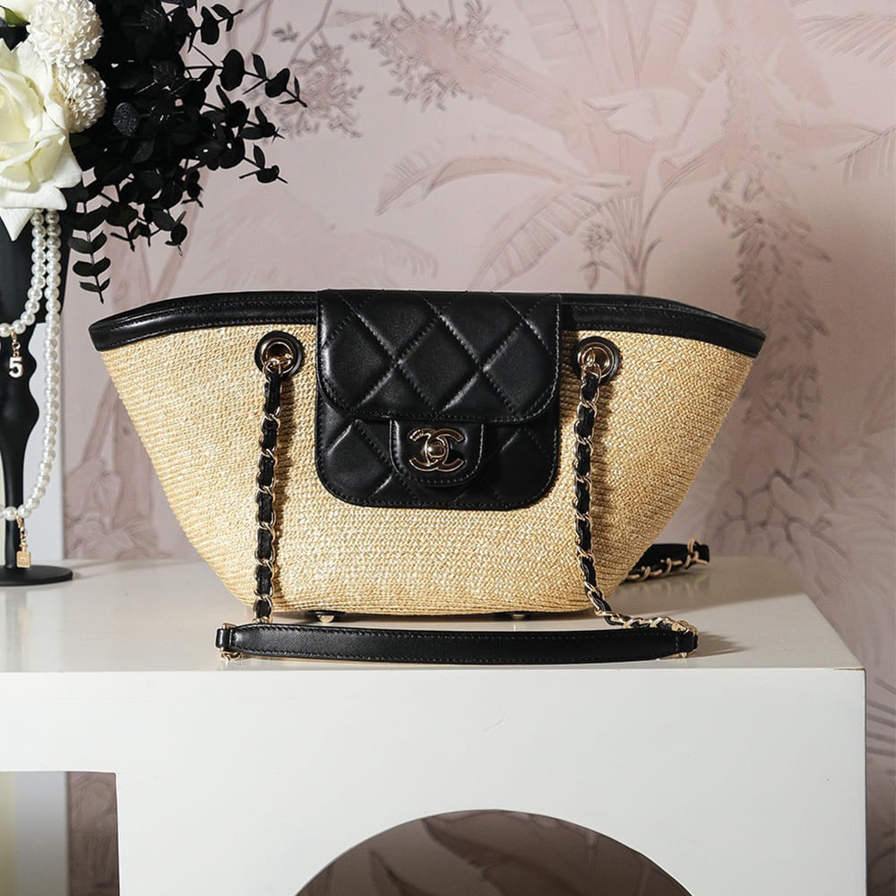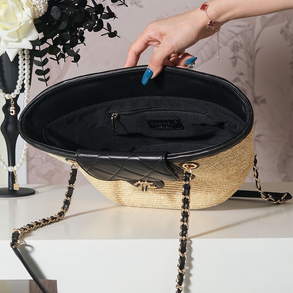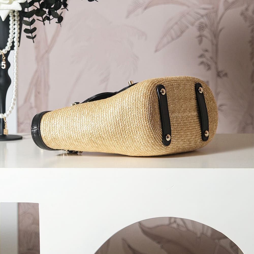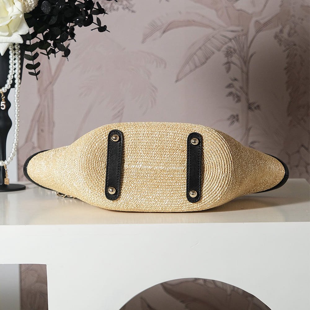 Braided Straw, Lambskin & Gold-Tone Metal