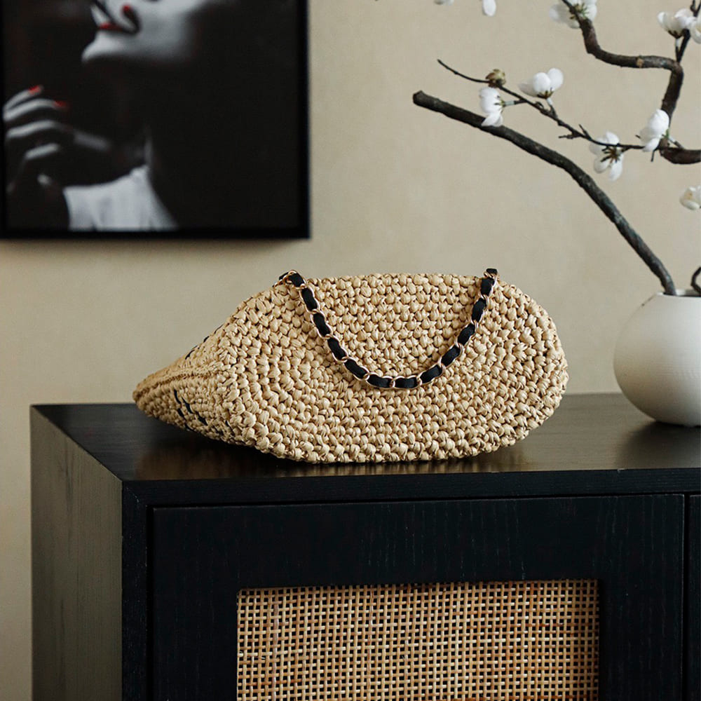Braided Raffia, Cotton Grosgrain Ribbon & Gold-Tone metal