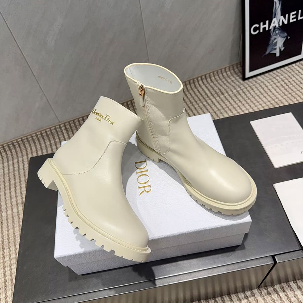 Gold-finish metal Christian Dior Paris signature on the side