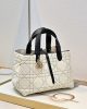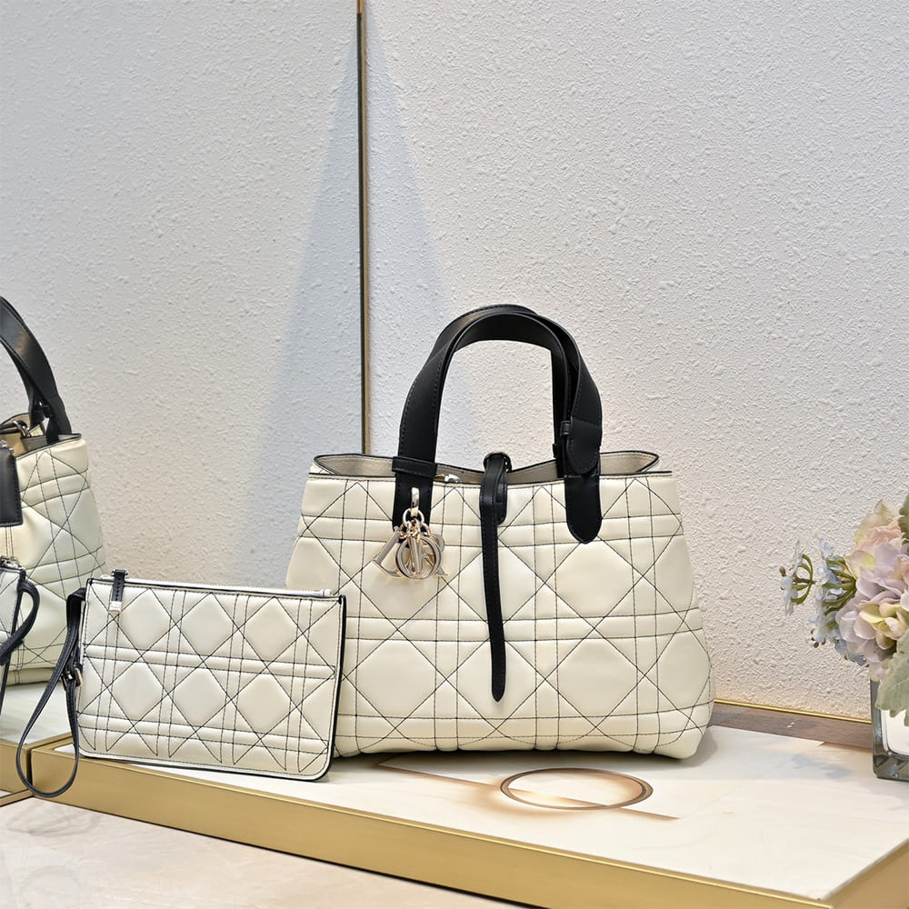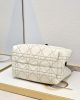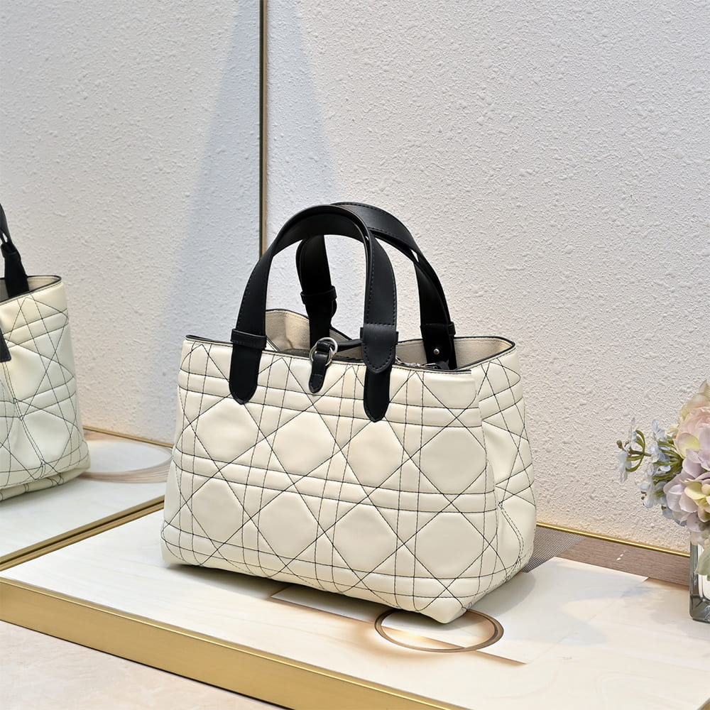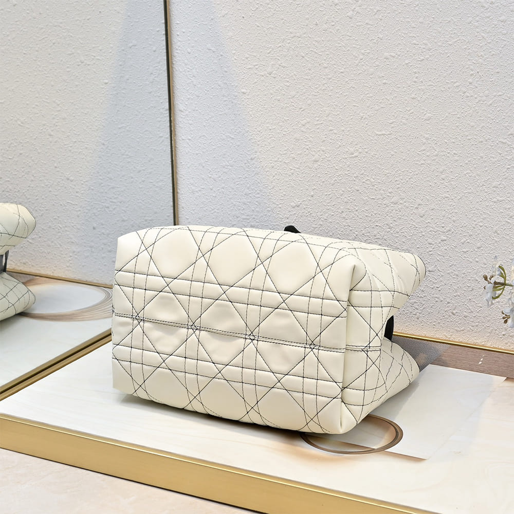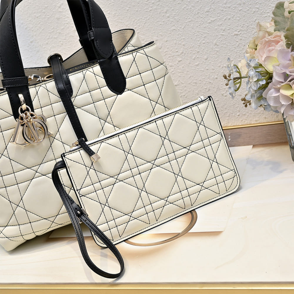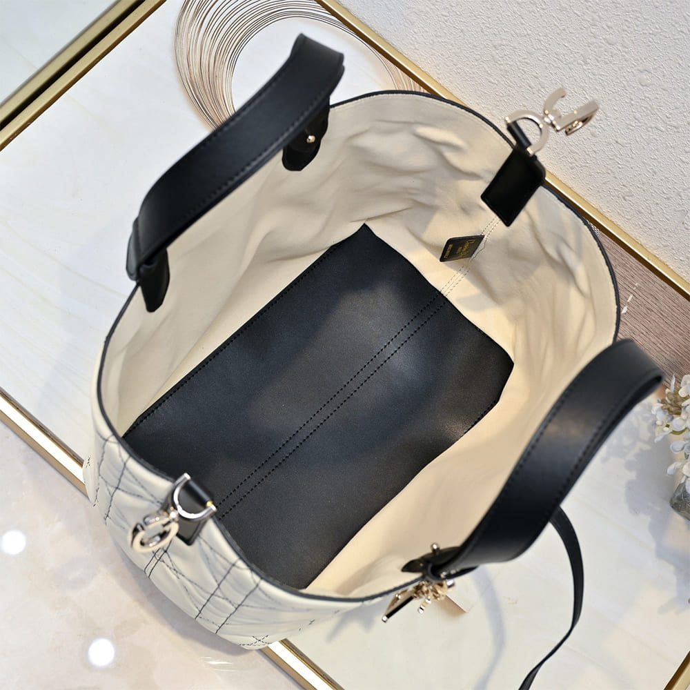 White Macrocannage Calfskin with Contrasting Black Topstitching