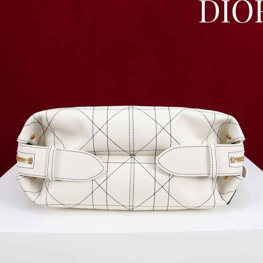 White Flat Macrocannage with Contrasting Black Topstitching