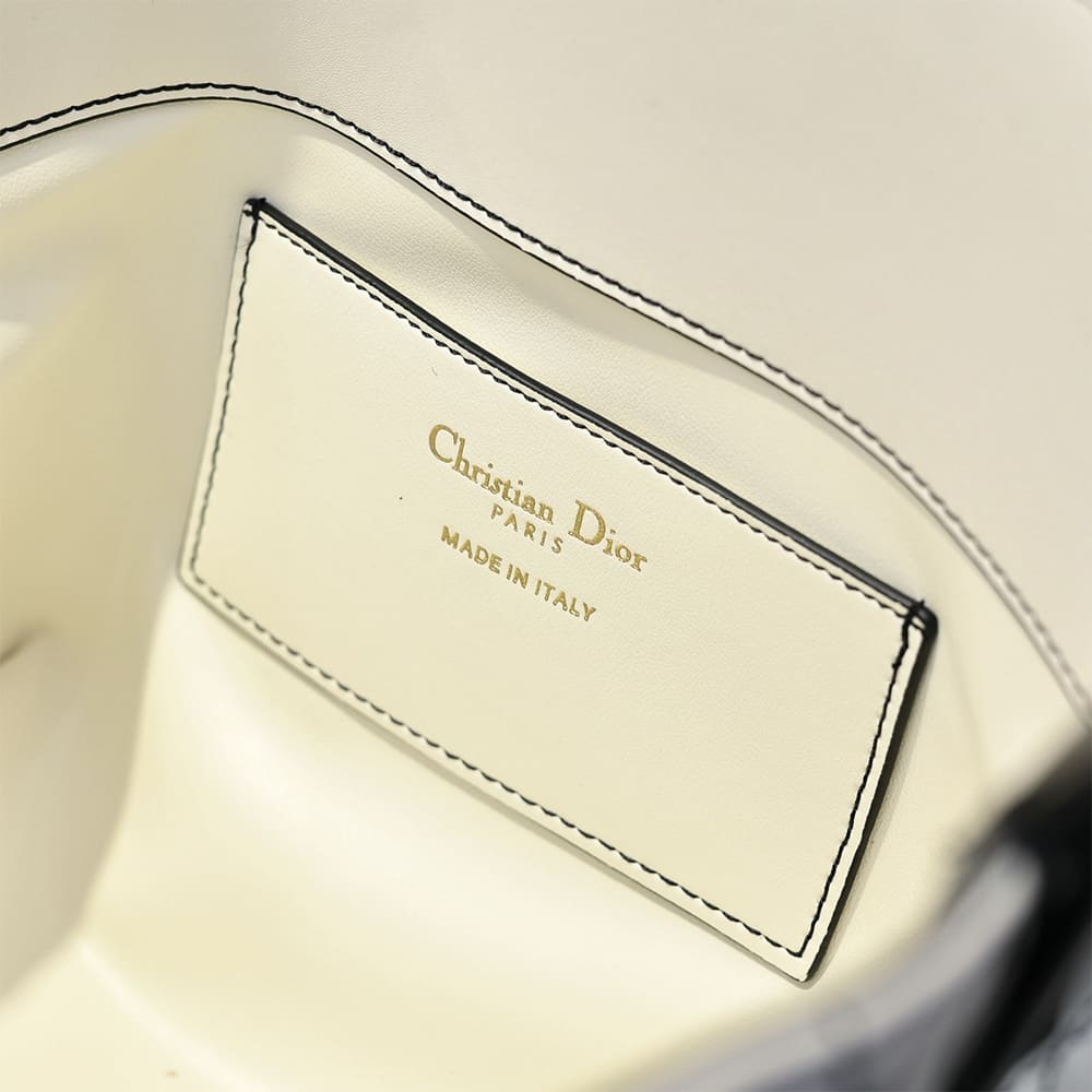White Macrocannage Calfskin with Contrasting Black Topstitching