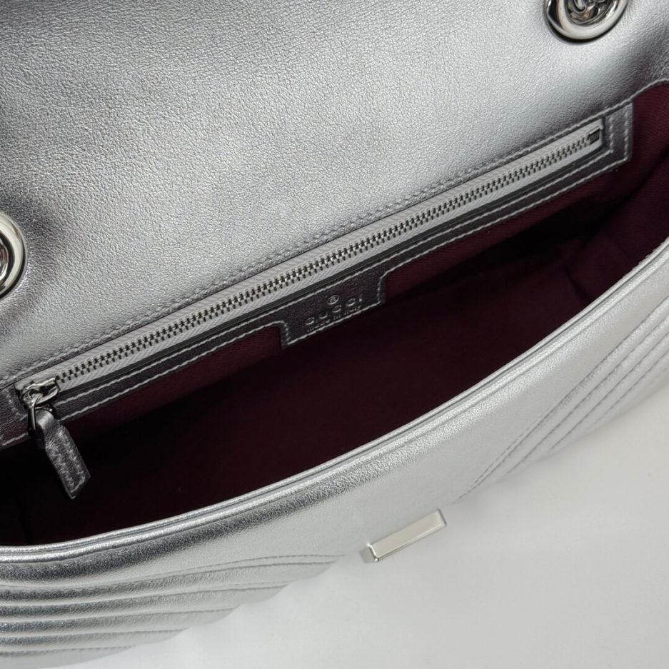 Sliding chain strap can be worn as a shoulder strap with 21.6″ drop or can be worn as a top handle with 11.8″ drop.